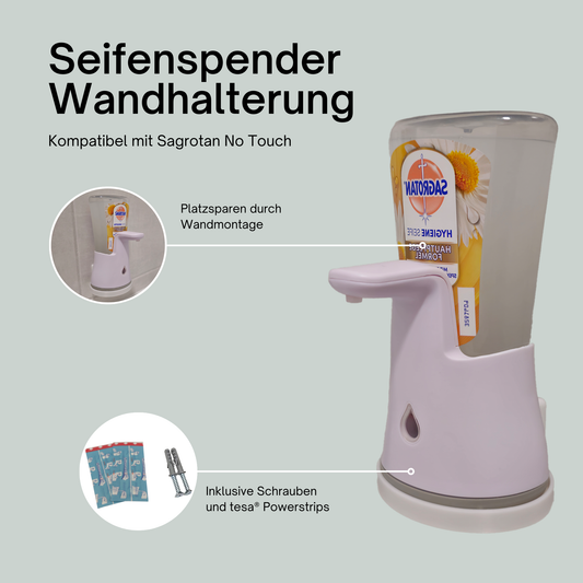 Wandhalterung für Sagrotan No Touch Seifenspender – inkl. tesa® Powerstrips & Schrauben, Dübel