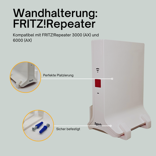 Wandhalterung für Fritz!Box Repeater 3000, 6000, 3000 AX, 6000 AX – Mit Befestigungsmaterial